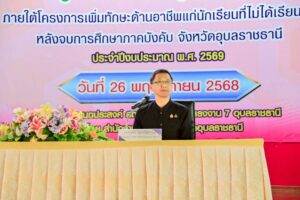 โดยสำนักงานจัดหางานจังหวัดอุบลราชธานี ได้จัดกิจกรรมดังกล่าวขึ้น เพื่อเสริมสร้างความรู้ ความเข้าใจและการรับรู้เกี่ยวกับแนวทางการดำเนินงานของโครงการพัฒนาทักษะอาชีพสำหรับเยาวชนที่ไม่ได้ศึกษาต่อหลังภาคบังคับ เพื่อให้สามารถเตรียมความพร้อมด้านอาชีพ เพิ่มโอกาสในการมีงานทำ และพัฒนาทักษะที่เหมาะสมต่อความต้องการของตลาดแรงงานปัจจุบันอย่างยั่งยืน
