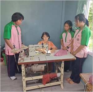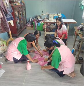 ภูมิปัญญาท้องถิ่นในงานฝีมือหรืองานช่างที่ทำด้วยมือและอุปกรณ์อย่างง่าย เป็นองค์ประกอบหลักในการผลิต เช่น งานตัดเย็บเสื้อผ้าพื้นบ้าน