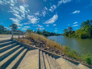 ริมแม่น้ำ ซึ่งเป็นส่วนหนึ่งของการแก้ปัญหาดินทรุดตัวริมตลิ่ง โดยเฉพาะช่วงที่น้ำลดและส่งผลกระทบต่อพื้นที่การเกษตรและสิ่งปลูกสร้าง ทำให้ต้องมีการสร้างแนวกั้นเพื่อป้องกันดินพังทลาย นอกจากนี้ชาวตำบลไร่ใต้ยังได้ใช้พื้นที่นี้ในการจัดประเพณีแข่งขันเรือพาย (เรือหาปลา) ซึ่งทั้ง 15 หมู่บ้านในเขตพื้นที่ของตำบลไร่ใต้เข้าร่วมประเพณีดังกล่าวในช่วงเดือนตุลาคมของทุกปี